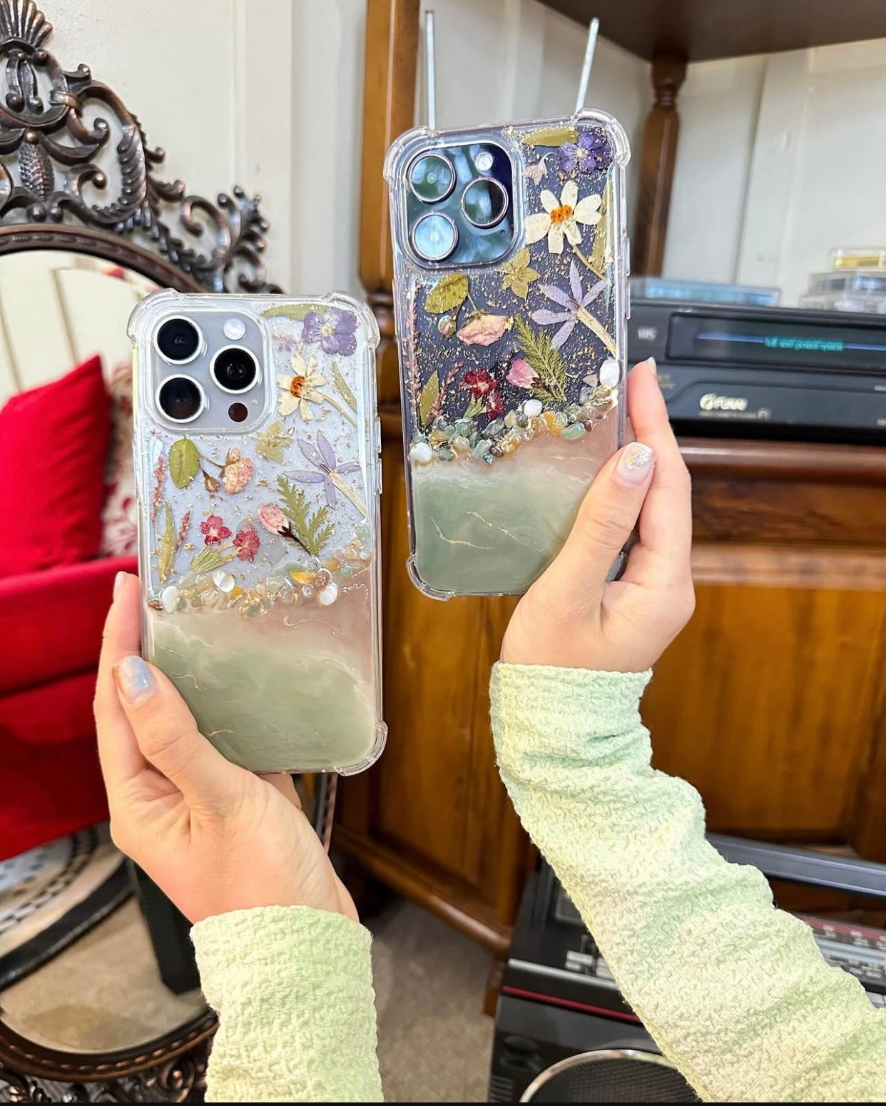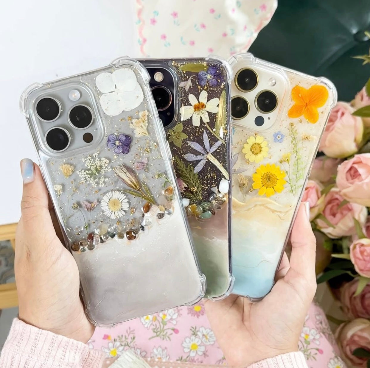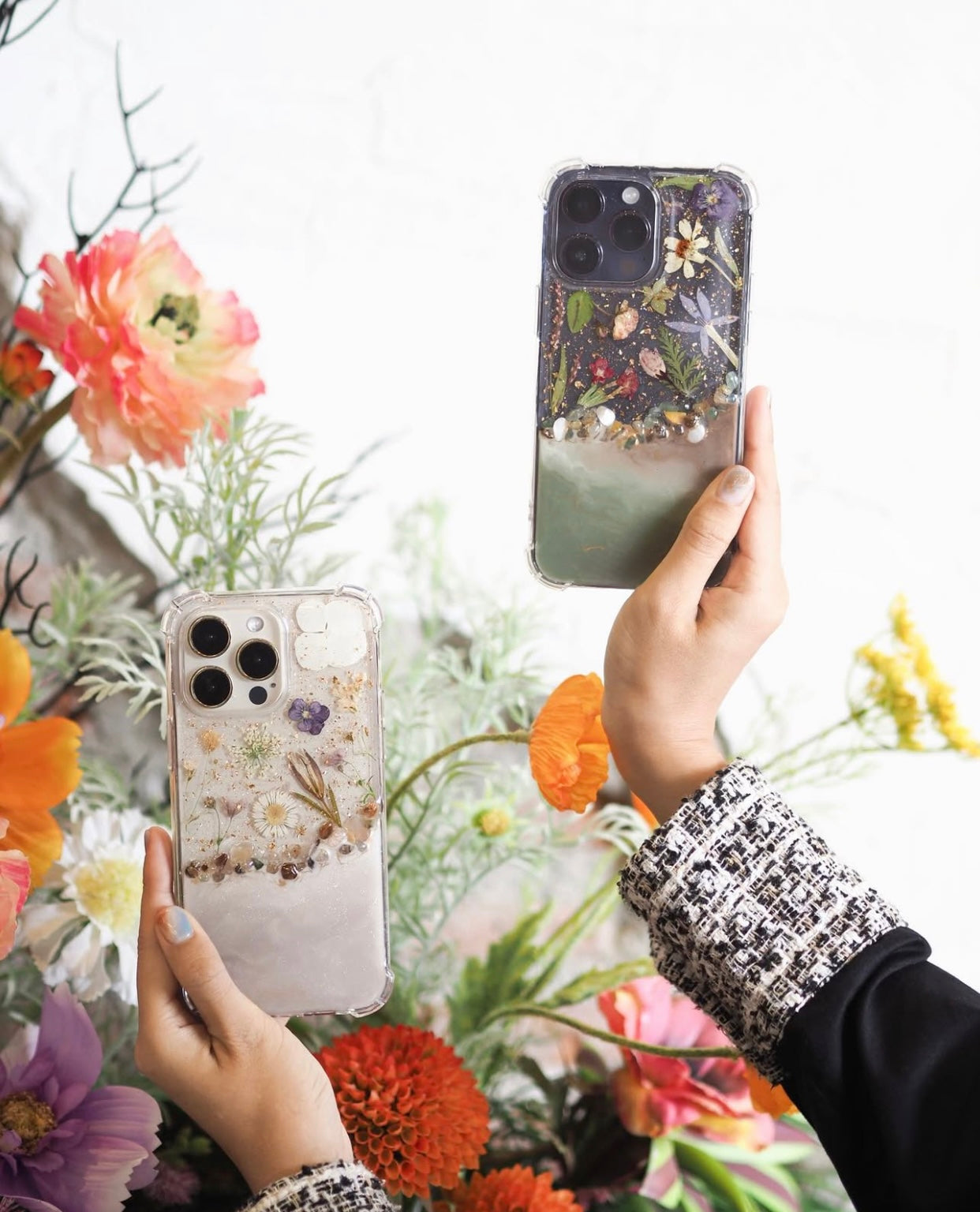 Because this case is crafted with real flowers, expect subtle variations in color and placement—making your piece truly one of a kind. Please note that real flower colors may change slightly over time due to environmental factors such as weather, air, and sunlight exposure.